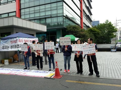 3월부터 6월현재 지금까지 직원분들은 K2코리아 정영훈사장과의 교섭을 요구하고있습니다.