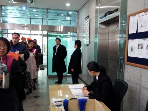 도착한순간 마음이 무너져 내리는것 같았습니다. 현관입구 앞에서부터 천막을 치고 직원분들이 '단결투쟁' 이라는 빨간머리띠와 빨간쪼끼를 다같이 입고 계셨습니다.