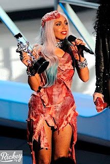 그녀의 패션중 가장 주목을 받은 패션은 아마 생고기 드레스가 아닐까 싶습니다. 그만큼 뜻도 깊은데