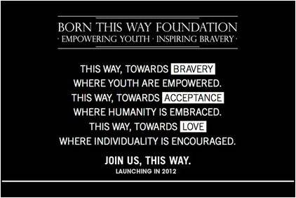 그녀의 네 번째 사회활동은 청소년들을 위한 비영리 단체 본디스웨이 파운데이션(Born This Way Foundation)을 설립한것 입니다. 레이디가가는 그녀의 이름을 걸고 전세계적 사회문제의 화두로 떠오르고 있는 교내 따돌림, 괴롭힘, 소외되는 아이들을 위한 재단을 설립하였습니다. 재단명은 사회적 소수자들을 옹호하고 사회를 향해 희망적 메시지를 담고있는 그녀의 노래 본디스웨이에서 본따서 그 메시지를 함께 전달하고자 본디스웨이 파운데이션이라 지었으며 설립과 동시에 힘든 유소년기를 보내고있는 십대들을 위하여 한화로 13억이 넘는 금액을 그녀의 재단에 기부하였습니다. (참고로 그녀 역시 학생 시절에 왕따 경험이 있다합니다.)