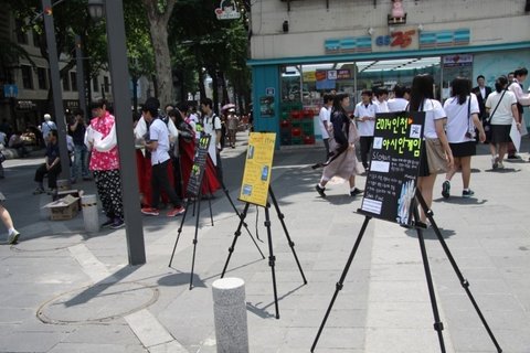 길거리에서 사람들이 캠페인을 한다면