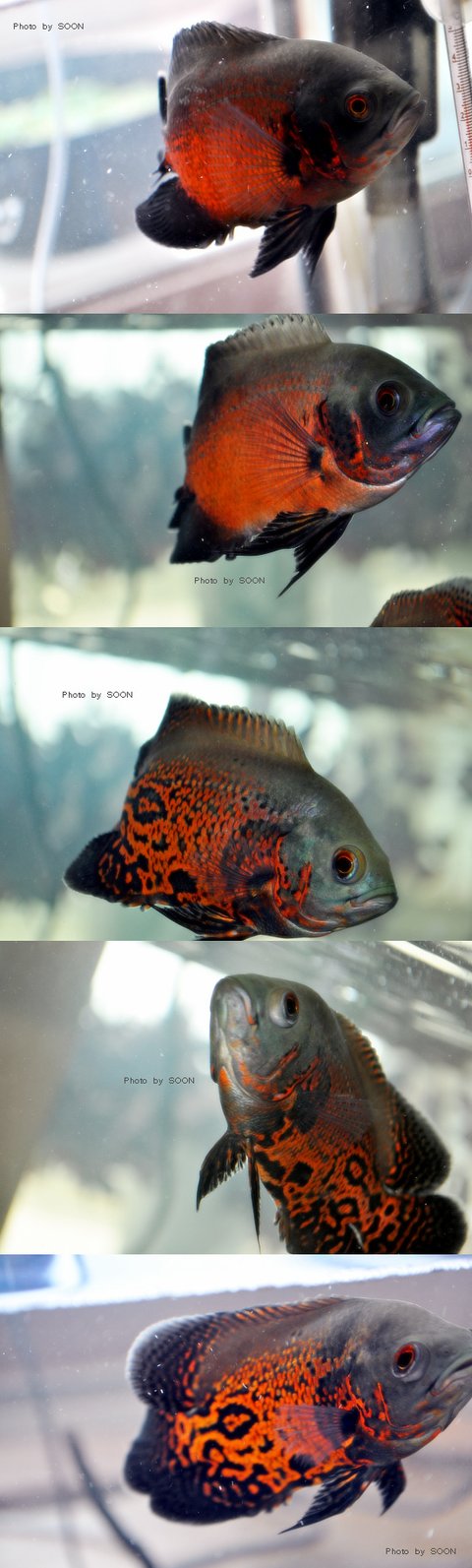 두마리인데 한마리는 그냥 빨강색 민무늬이고 나머진 스팟이 막 박혀있슴다.ㅋ 사실 청계천에서 데려온 아이는 저 스팟이 있는 녀석.