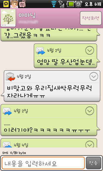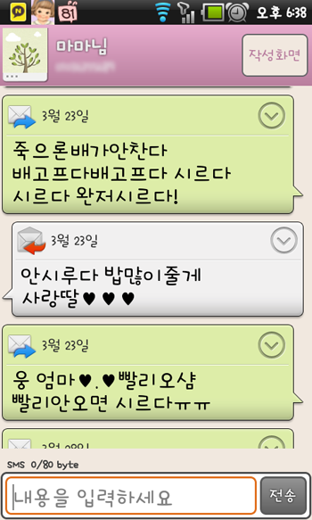 허전해서 저번에 올렸던 엄마 문자사진도 올려봄.