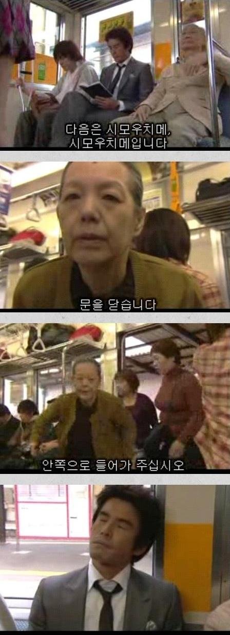 자리양보를 못받으신 할머니는 원망스러운 표정으로 남주를 쳐다보는데..