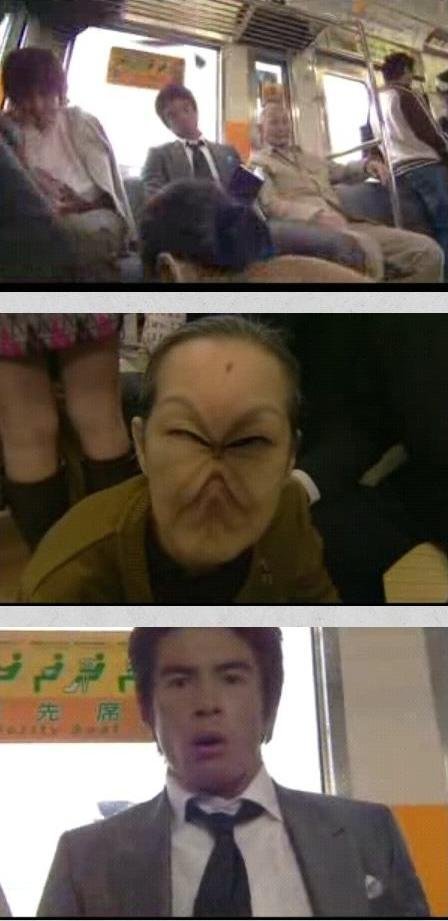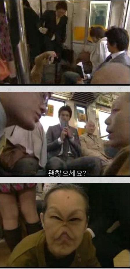거기에 식겁한 남주, 자리를 양보해줌. 그러자 일그러짐을 멈추는 그 아주머니의 얼굴.