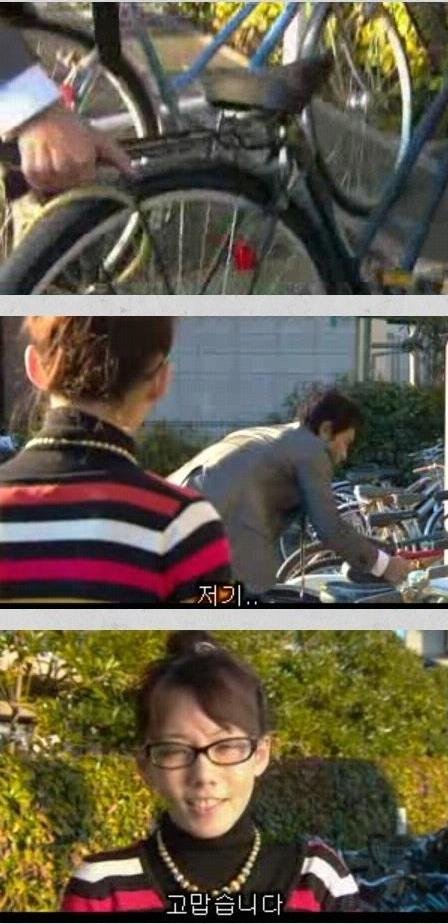 자전거를 세우던 여자를 도와주자 아무 일도 일어나지 않음.
