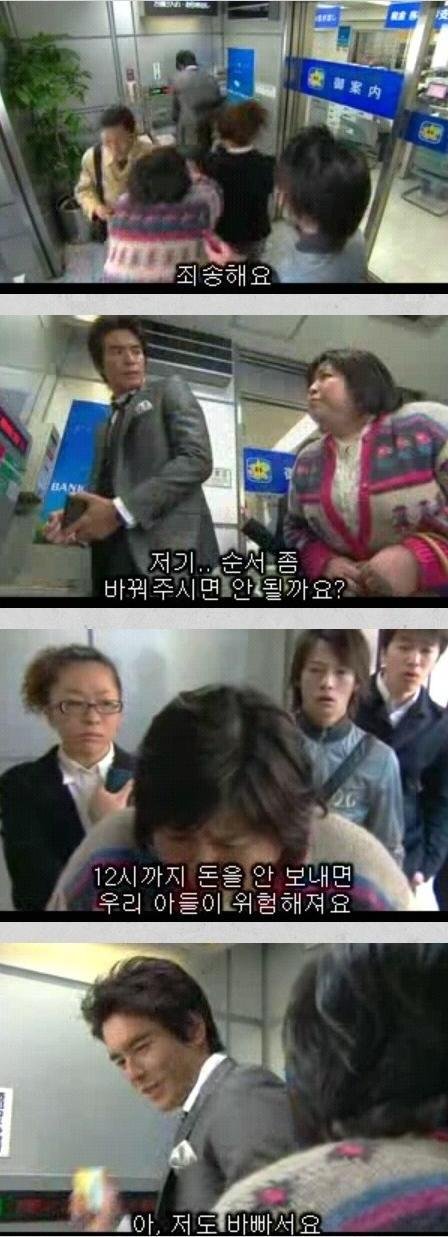 자기 차례가 되어 현금을 인출하려는데, 남주 뒷차례인 아주머니가 12시까지 돈을 보내지 않으면