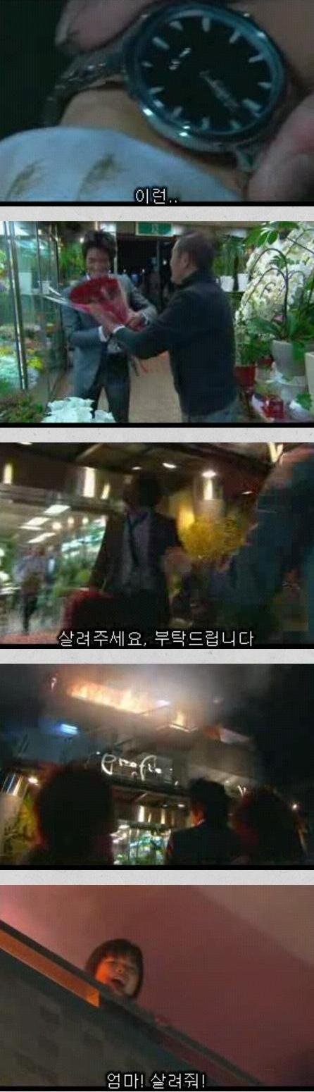 기다리는 여친과 건물에 갇힌 꼬마애 사이에서 잠시 고민하던 남주는 이내 불이난 건물로 뛰어들어가