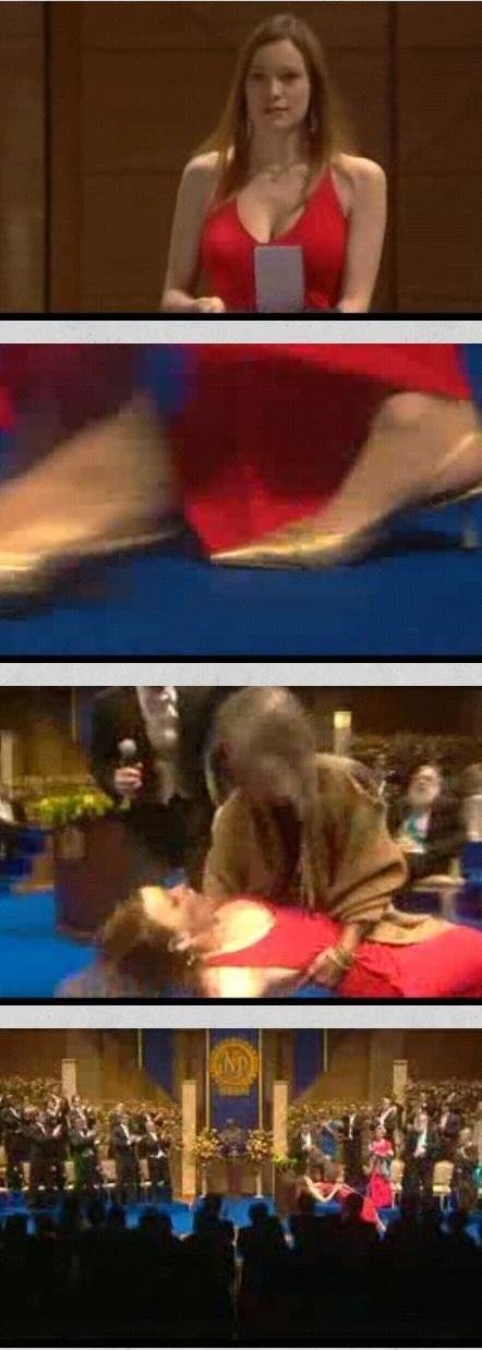 상패를 가지고 오던 금발의 미녀가 옷자락을 밟고 넘어지려하자 남주 멋지게 받쳐줌ㅋㅋ