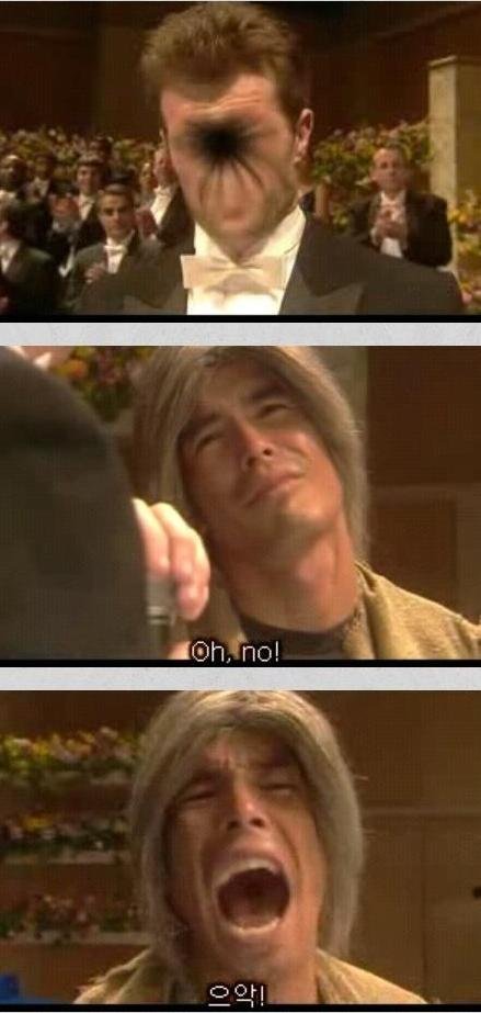 얼굴이 일그러짐... 그리고 빛이 터져나오며 화면이 바뀜.