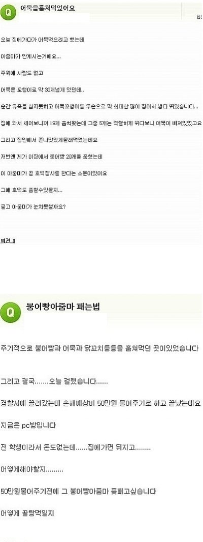 엏..베플이다..집짓구가여 ---------------------------------------------------------------------- 붕어빵아줌마 이야기한 학생 패주고 싶다 추천