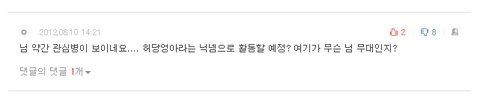 님은 이렇게비판하면서 댓글까지달아주시네여ㅎㅎ 글써도베글되지도못하는주제에ㅉ 넷상이라고이러마여제발 한심해요
