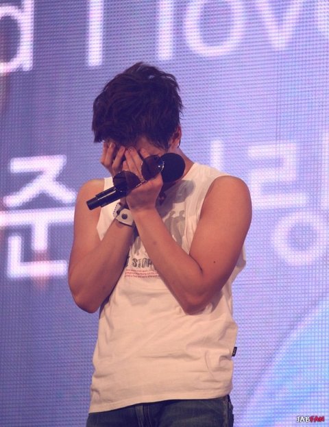 다른 멤버들은 이때 준수는 무릎아퍼서 쓰러지고