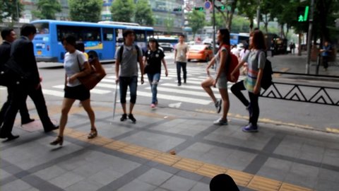 이번에는 사람이 더 많은 횡단보도에서!