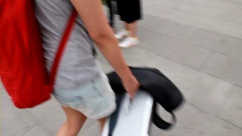 저기 무거운 카메라 가방 들고 가는 거 보이세요?