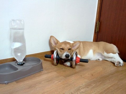 나의 덤벨..어느순간 그냥 문 틈에 끼어 놓는 용도와 마빡이 수면용이 됨 ;;;;