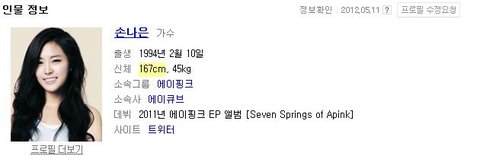 손나은 키는 167이 안되는