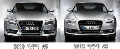 (사진 왼쪽이 2010 아우디 A5, 오른쪽이 2012 아우디 A5입니다.)