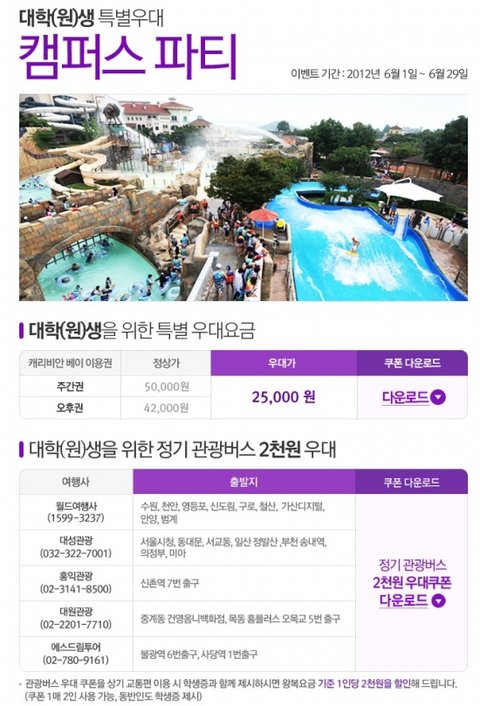 캠퍼스 파티가 진행중인 캐리비안베이로 떠나자!!!