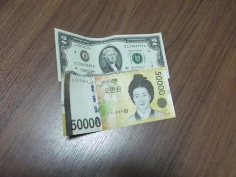 나님에게 항상 좋은일만 있으라고 행운의 2달러와 함께 50000원도 주셨음