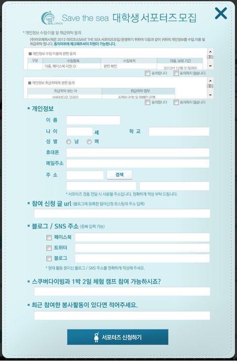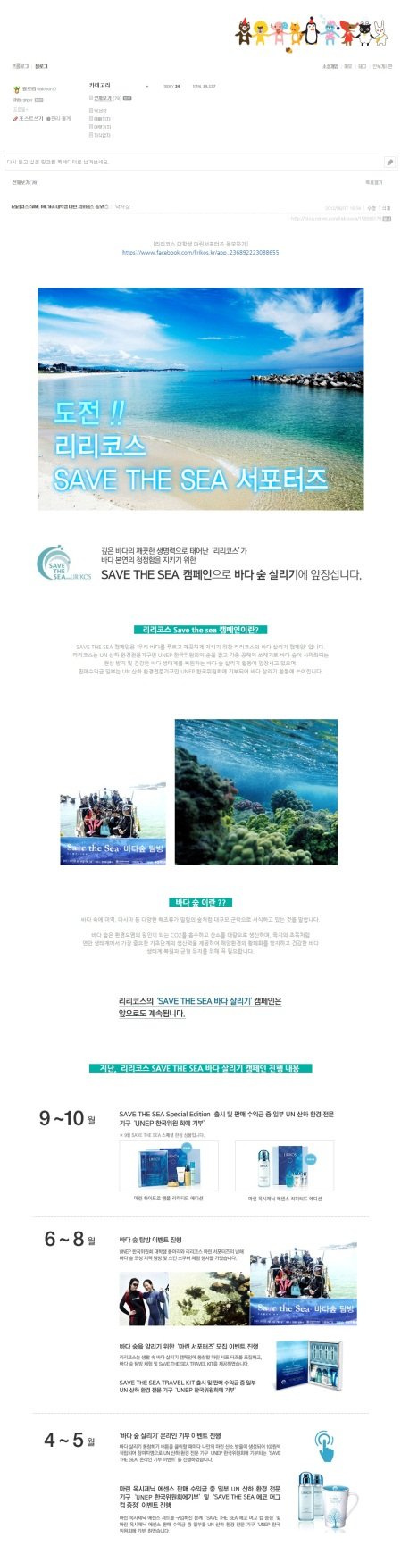 리리코스 SAVE THE SEA 대학생 마린 서포터즈 신청하고픈분들은 참고해 주세요 ^^
