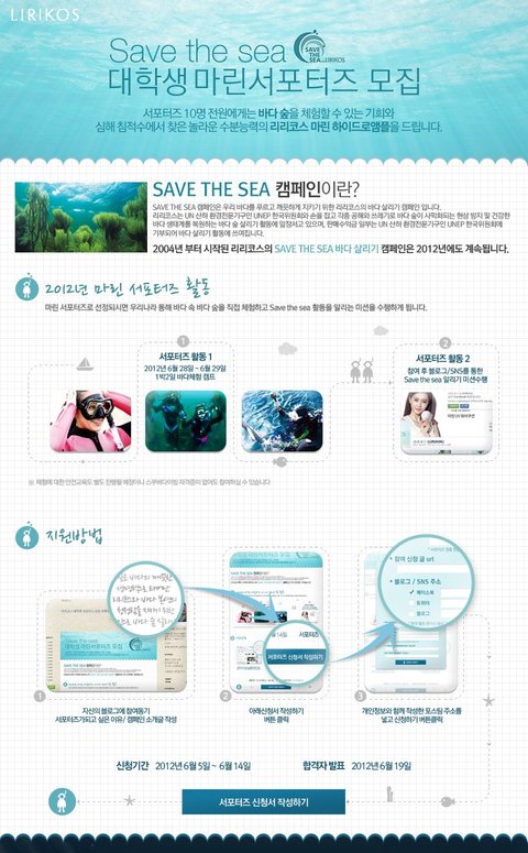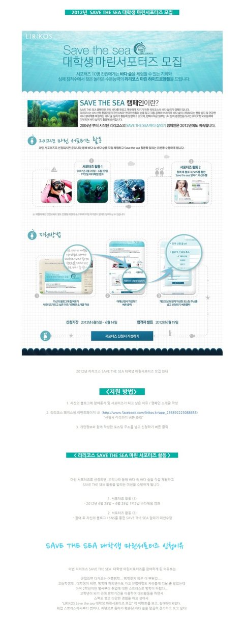 리리코스 SAVE THE SEA 대학생 마린 서포터즈 신청방법은