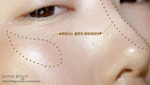 그리고 루미너스 글로우 하이라이터로 T존과 광대 위주를 가볍게 발라 주었어요.