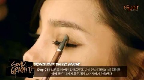 STEP 3 | 브론즈 페인팅 워터프루프 아이 펜슬 [골드디거] 컬러로 언더라인 앞머리부터