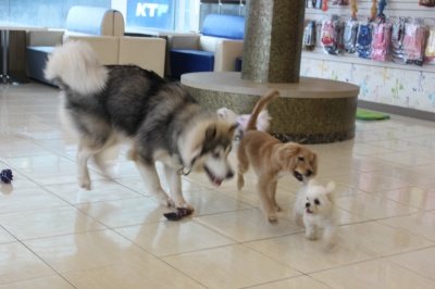 자기보다 10배이상 덩치가 큰 말라뮤트앞에선 그냥 하나의 작은 생명체일뿐 ㅋㅋㅋ