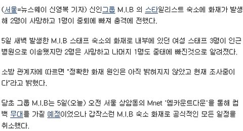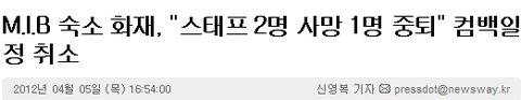 4월5일... 바로 그 사건이 발생한 것임 .. M.I.B 숙소 화재 (엠아비의 숙소가 아니라 코디들의 숙소임)