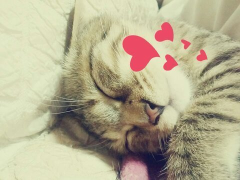 혓바닥을 쭉은 아니라도 귀엽게 살콤히 내밀고 잠! 귀여움..