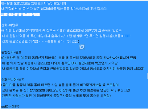 사실 마음같아선 다 잘한다고 하고싶음 다들 근육이 있어서 그런지 춤출 때 단체로 뭉치면