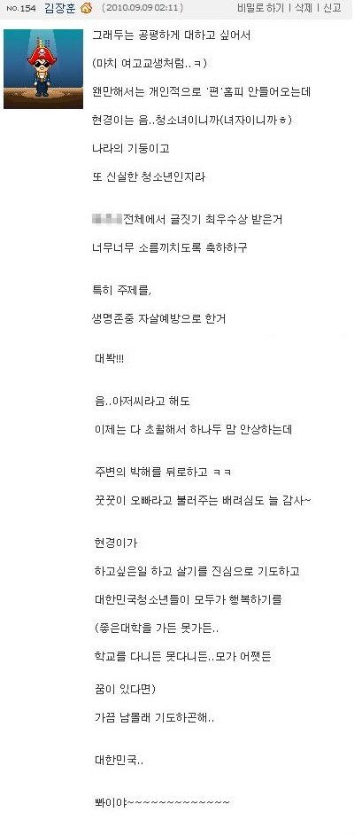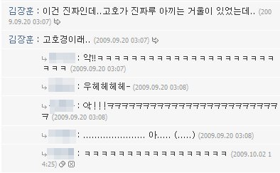'우와 대박 엄마 일루와바!!!장훈오빠가 내 방명록에 덧글달아주셨어!!'하면서 엄마 불러서