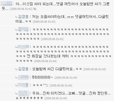 오빠가 장난치셔서 한참 덧글 채팅이 이어진 후의 덧글....