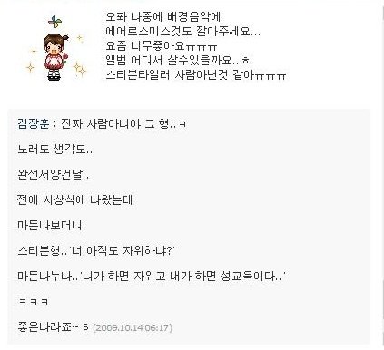 장훈오빠는 미니홈피 방명록이나 게시판에서 종종 덧글채팅을 하세요...
