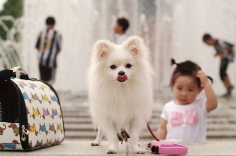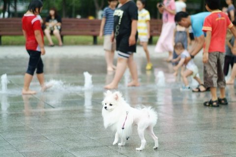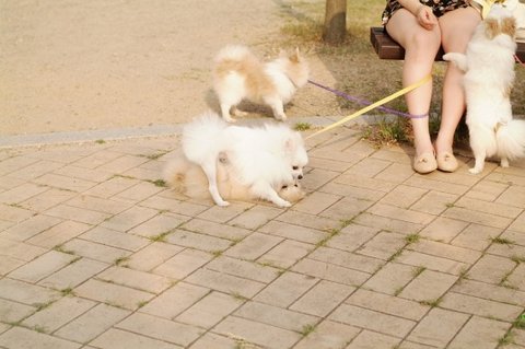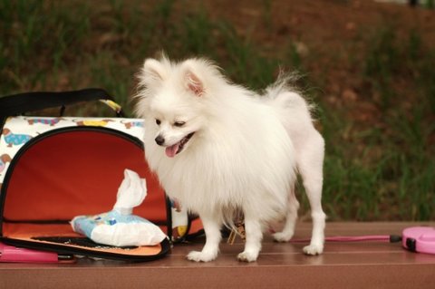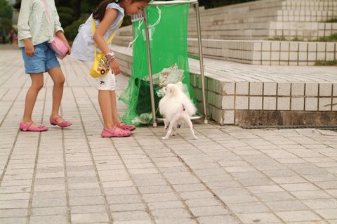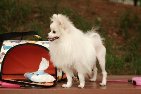 이동가방 정리하느라 잠깐 벤치에 내려놓았개