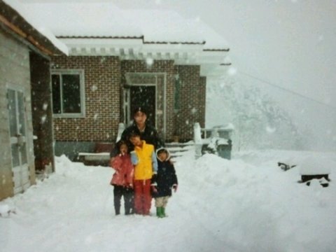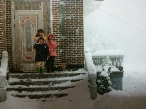 이건 우리가 태어나서 눈이 제일 많이 온날. 아침부터 뛰쳐나가서 엄마가 사진 찍어 주셨다.