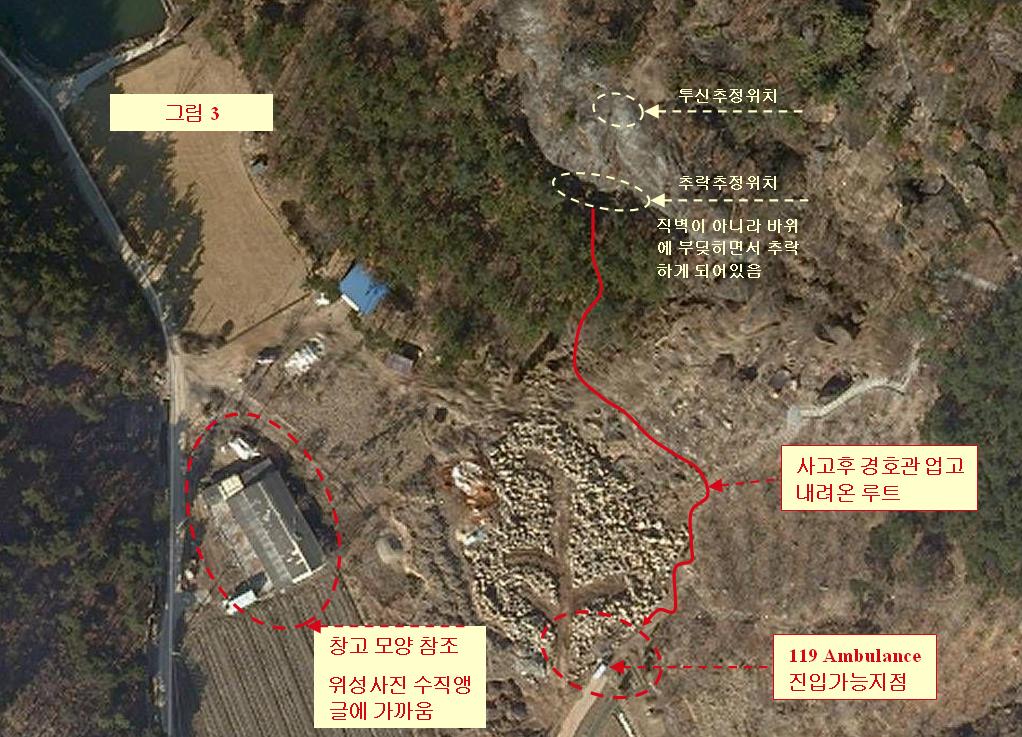 뭐가 보이는가? 여기가 경찰이 추정한 추락위치다. 아직도 안보이는가?