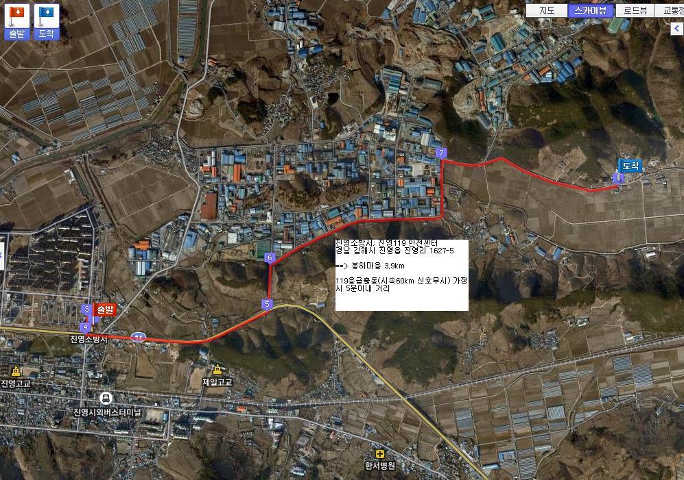 그 리고, 지금도 오락가락 한다는 초강력 울트라 대한민국 최고 경비관 청와대 파견 경비관의 사건후 행동을 떠올려보라... 아래 진영읍 소방서가 평소 VIP 담당으로 긴장 바짝하고 있을 진영119 소방서가 얼마나 가까운지 한번 봐라. 거리가 3.9km 다. 난 무지무지 먼데 있어서 응급의료진이 들것 갖고 오는데 삼사십분 걸리는줄 알았다.