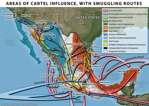 멕시코 마약 카르텔들의 영향력을 보여주는 지도 <관련 뉴스들>