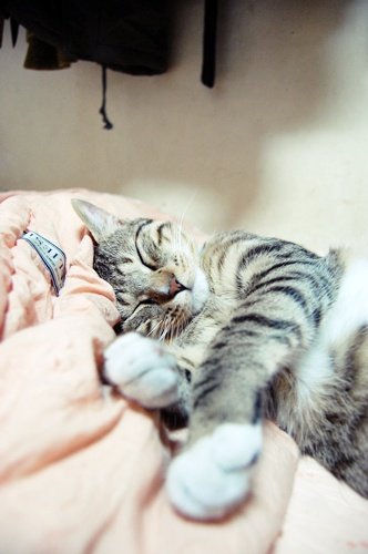 다시 일어나면 글쓴이 발 밑에서 자다가 눈이 마주치고 골골 거리면서