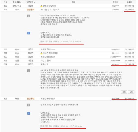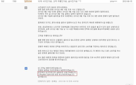 열받아서 쇼핑몰측의 문의사항을 봄. 그리고 동생님께서 글을 남기심. 하지만 답변은 없었고
