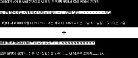 솔직히 말하자면 A가 B하고 데이트하는데 우리 3명이 난입....ㅋㅋㅋㅋㅋㅋㅋ 미안