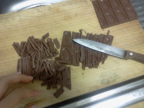 금박 껍질을 좌르르 벗긴 초콜릿을 잘게잘게 썰어줬음