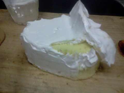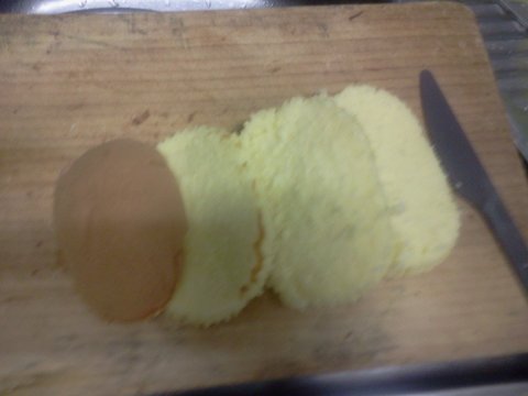 위에 젤로 부드럽고 맛있는 갈색부분은 동그래서 나중에 크림 올리기 힘드니까