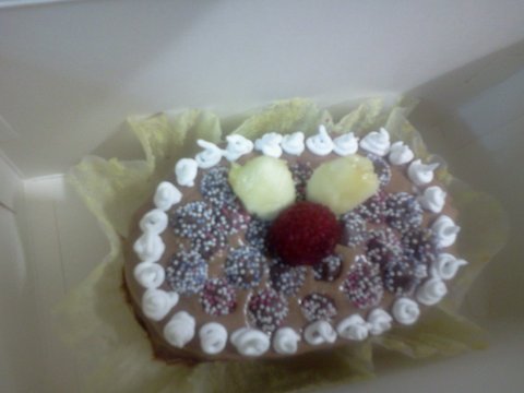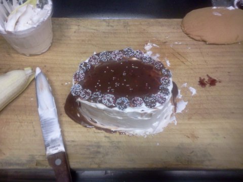 대강 생크림을 발라주고 그위에 아까 중탕시킨 초코를 적당량 부은 후