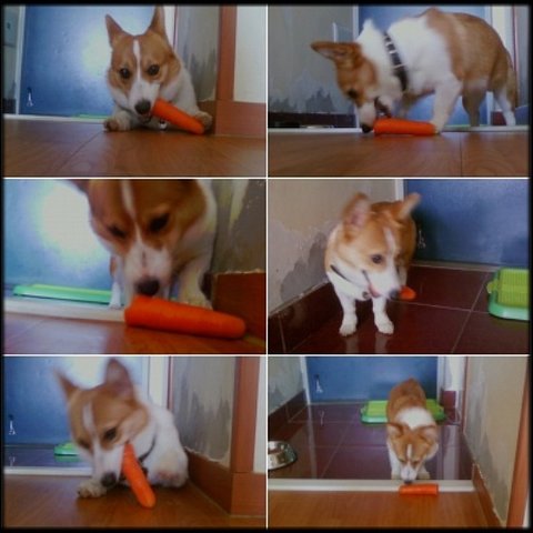 ㅋㅋㅋ 당근 한개를 주니 입으로 물고 절대 안 놓았었는데..