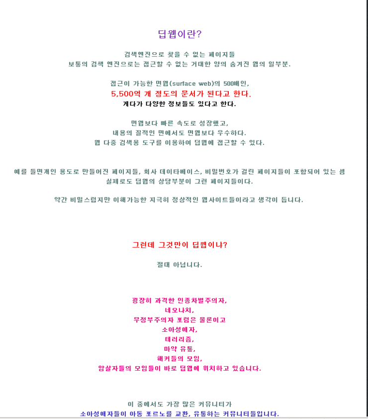 말로 설명하자면 매우 힘든 그런 곳이 딥웹입니다