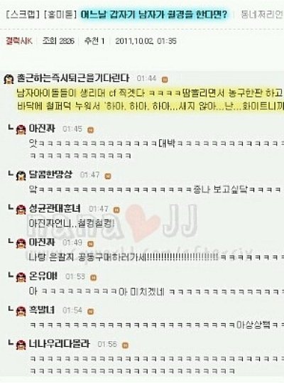 민식이냐? 야오늘 축구하자 안돼~ 나오늘 생리터졌단말야임마