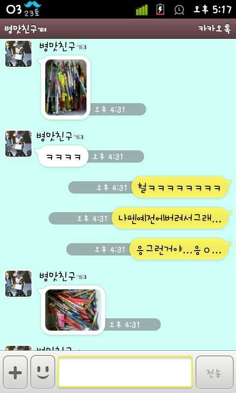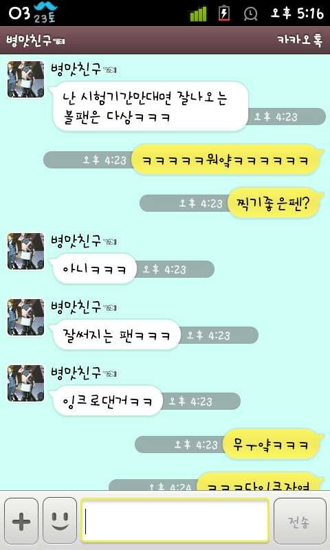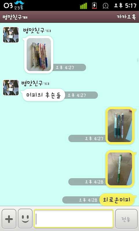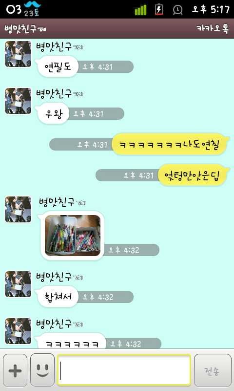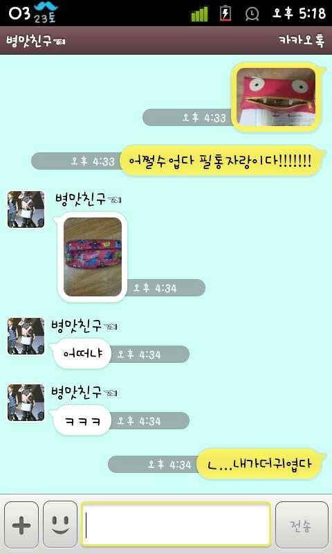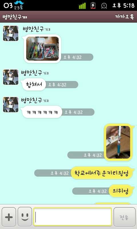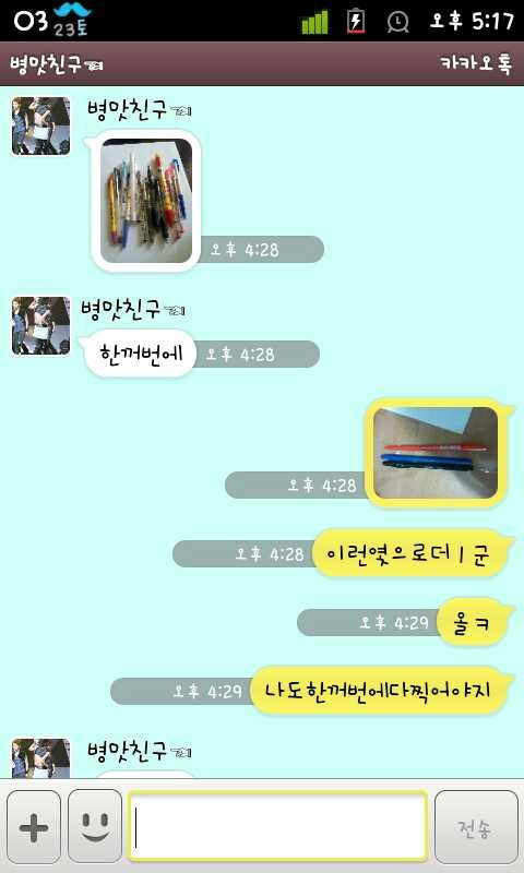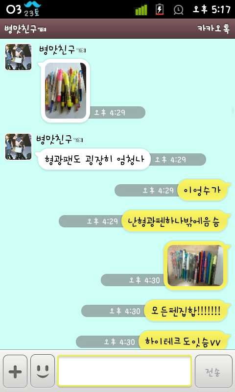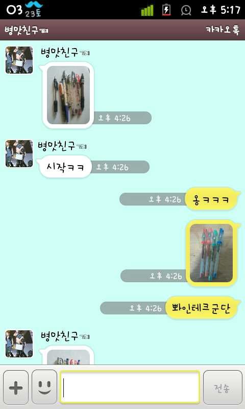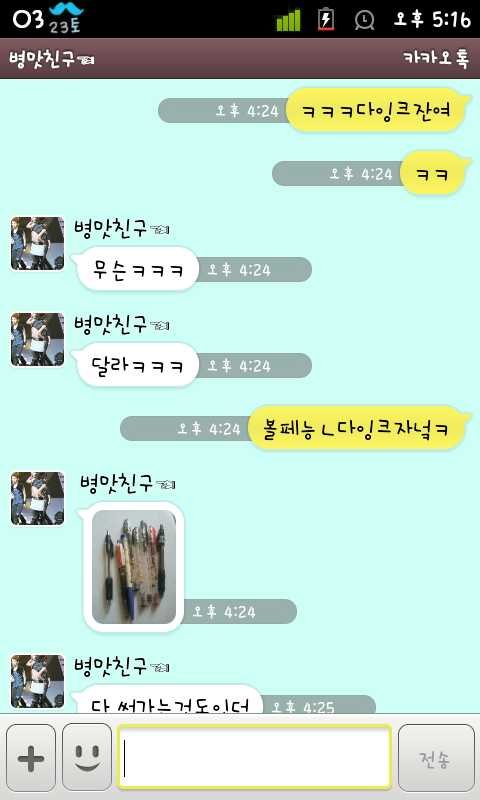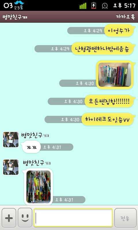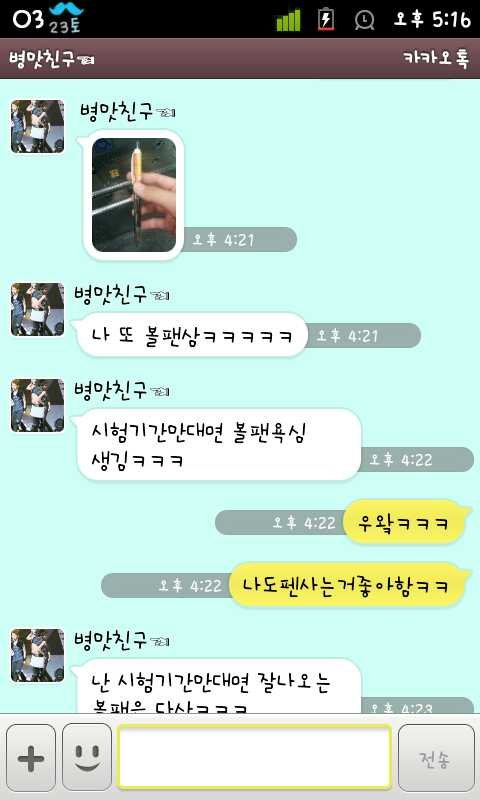 카톡을 하는중에 친구가 볼펜을 샀다고 자랑을 했음